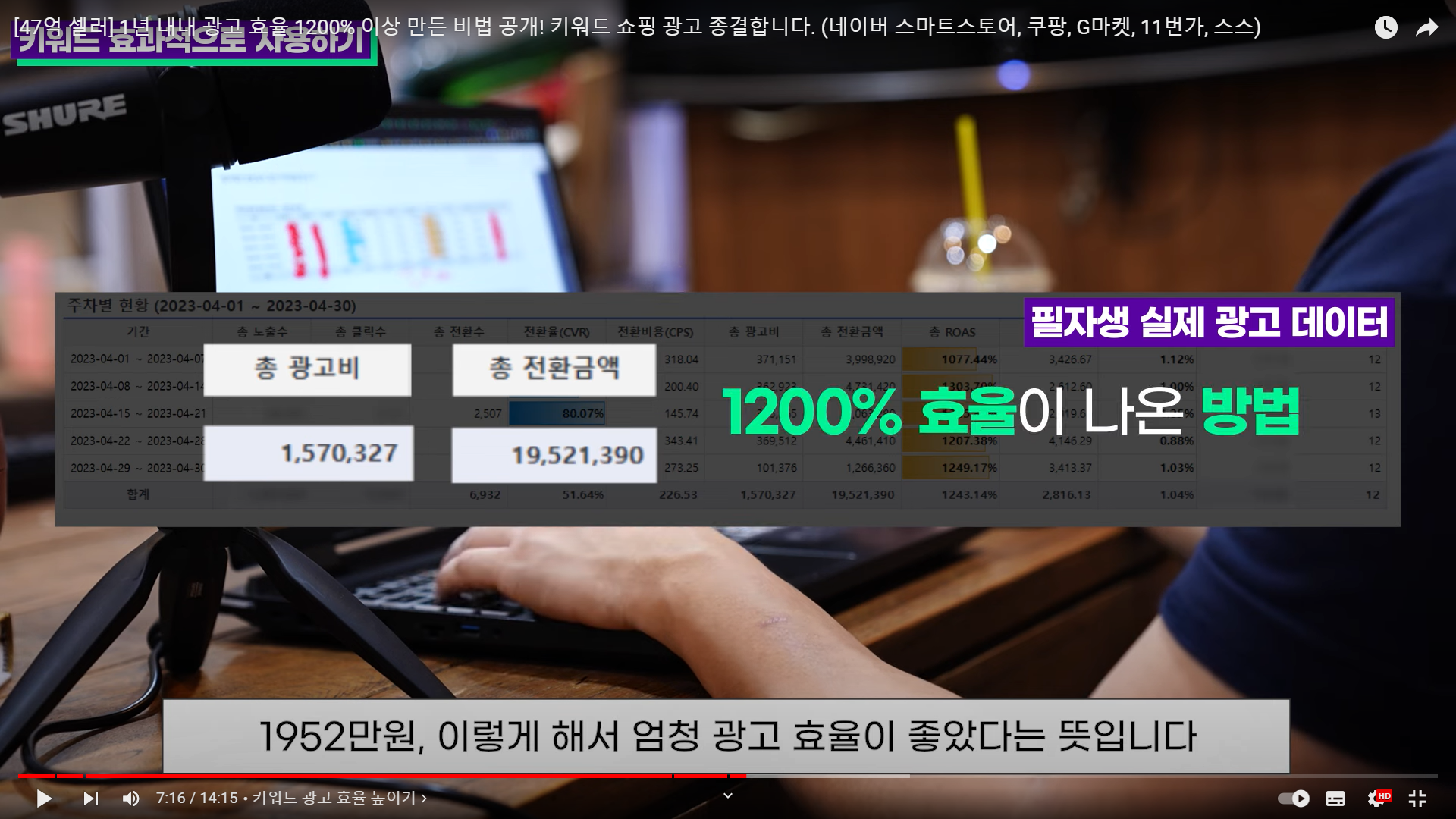 평균노출순위 12위정도 셋팅, 광고비 셋팅을 얼마에 했는지~ 낮은 클릭당 광고비를 쓰고 있음