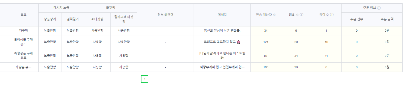 그에따라 통계치를 마케팅메세지-마케팅통계를 통해 볼 수 있어요💚