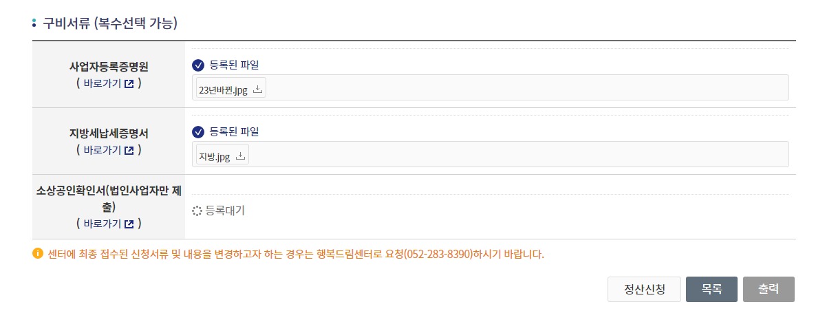 아래의 증빙자료를 첨부하여 제출하면 심사 후 소상공인 사업자에게 계좌이체 형태로 지급