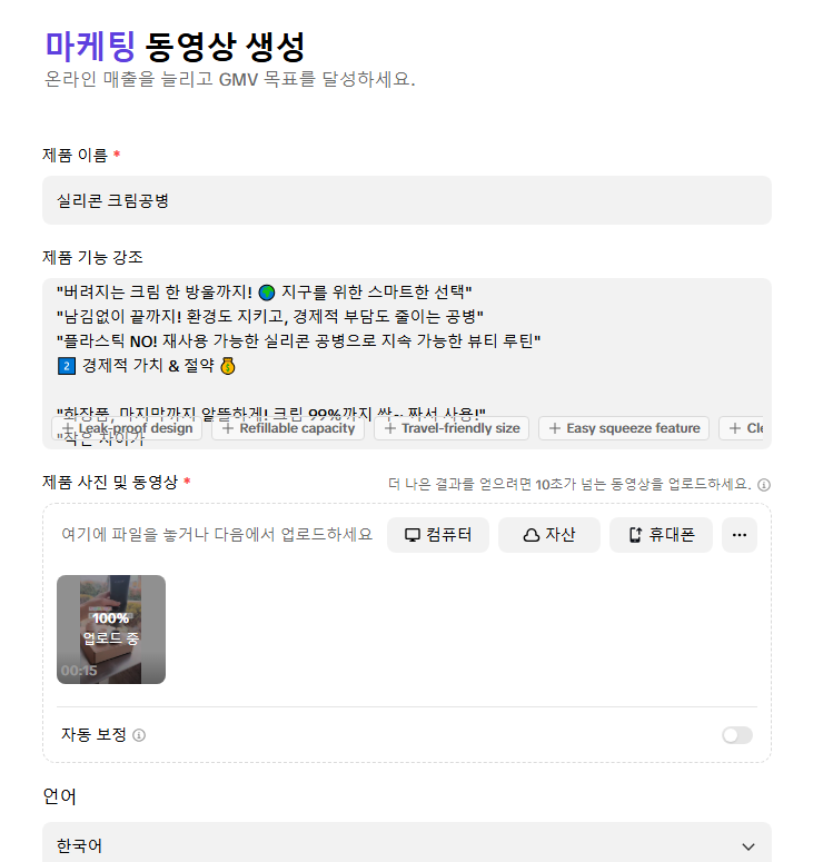 - 제품을 추가하면 자동으로 멋진 쇼츠가 완성된답니다.